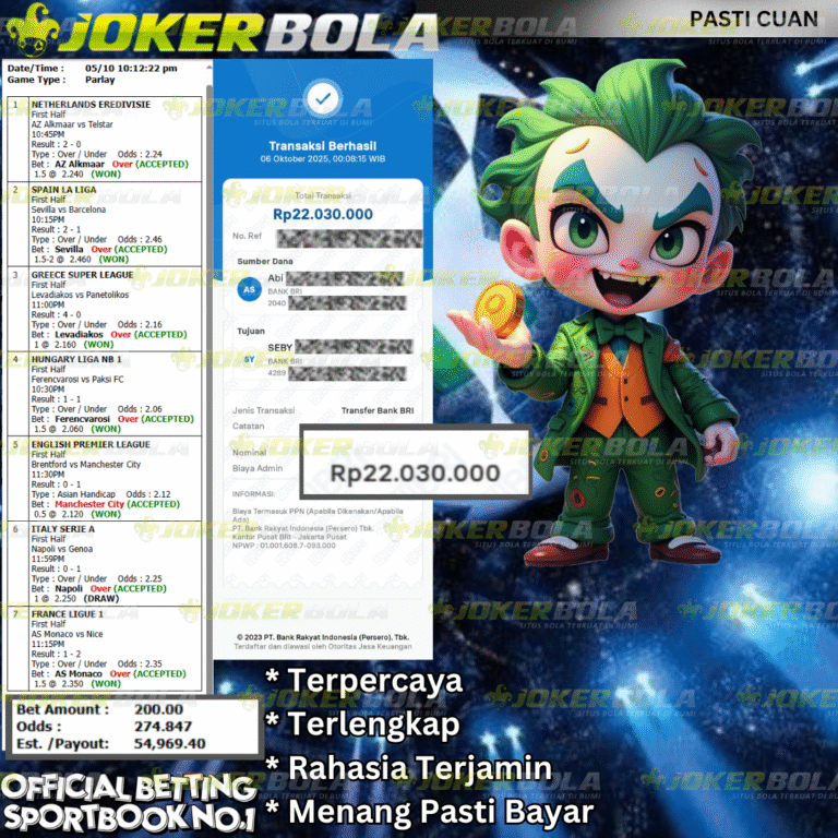 Jackpot Parlay Sportbook Rp.12,200.000 BUKTI TRANSFER JOKERBOLA Selamat kepada Sahabat JOKERBOLA…