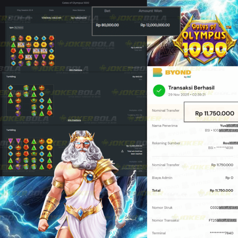 Jackpot Gates Of Olympus Di Jokerbola Rp. 9,000.000 BUKTI TRANSFER…