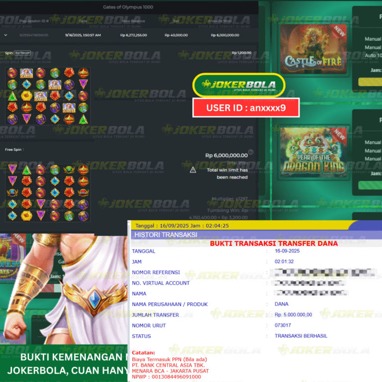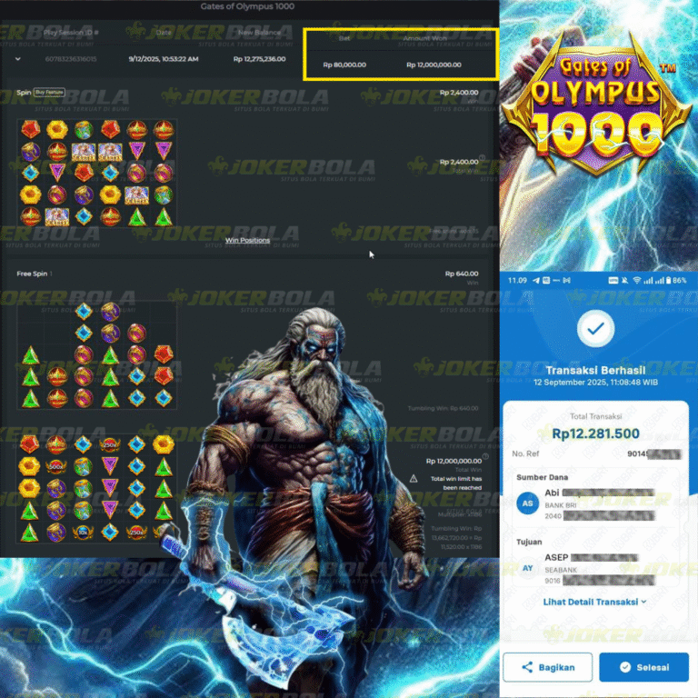 Jackpot Gates Of Olympus Di Jokerbola Rp. 9,000.000 BUKTI TRANSFER…