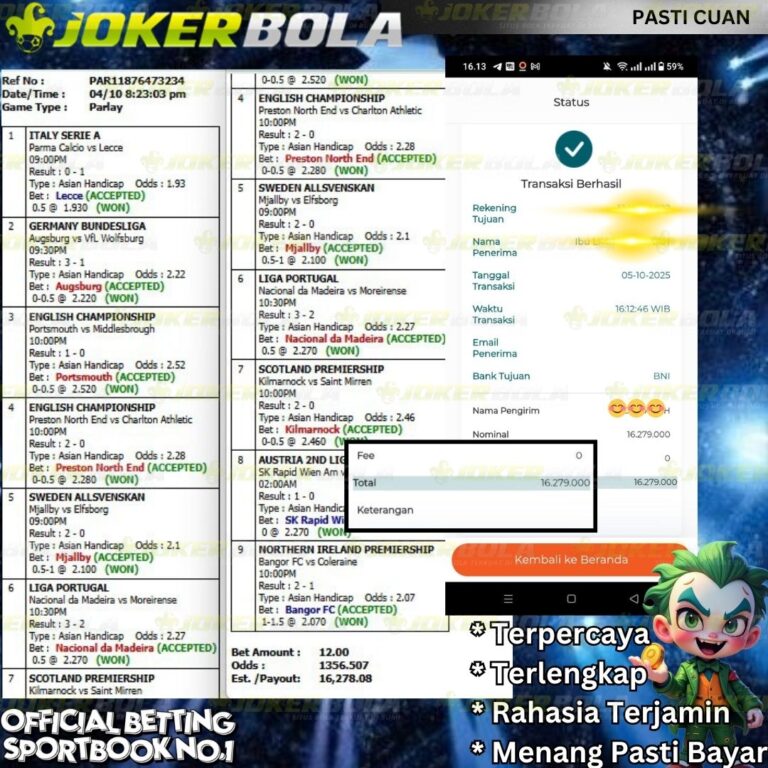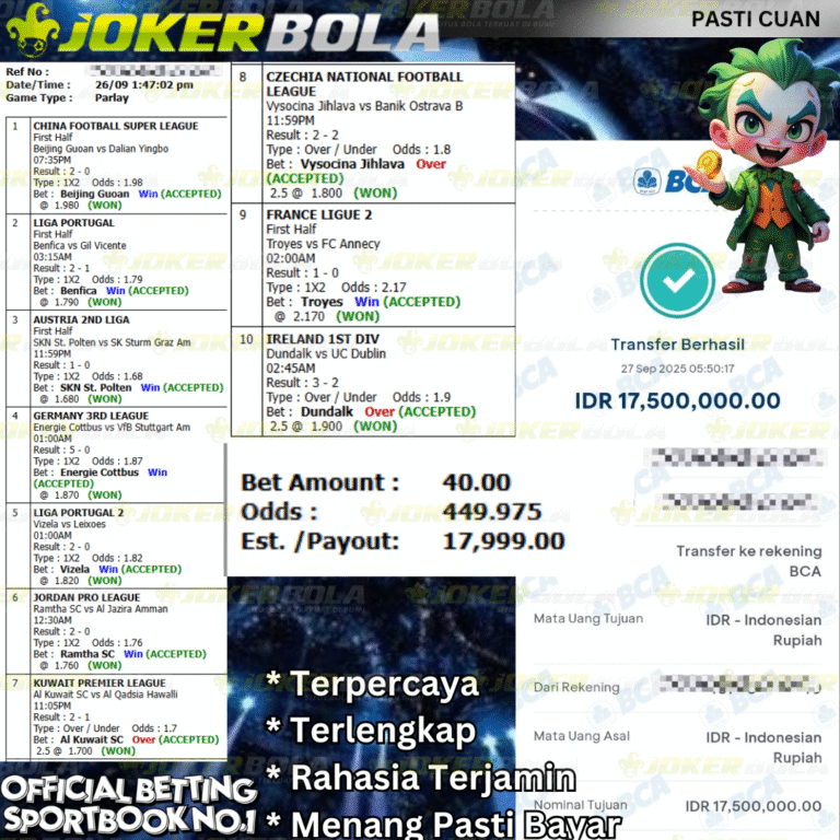 Jackpot Parlay Sportbook Rp17.999.000,00 BUKTI TRANSFER JOKERBOLA Selamat kepada Sahabat …