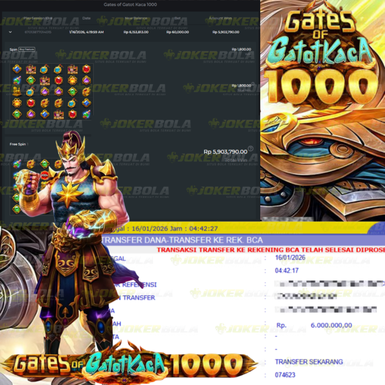 Jackpot Gates OF Gatotkaca 1000 Jokerbola Rp. 6,000,000.00 BUKTI TRANSFER…