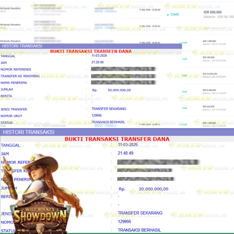 Jackpot Wild Bounty Jokerbola Rp.88,198.000.000 BUKTI TRANSFER JOKERBOLA Selamat kepada Sahabat JOKERBOLA dengan user id Mahxxxxxxx93 telah berhasil meraih JACKPOT pada permainan Wild Bounty dari provaider PG SOFT dengan kemenangan sejumlah Rp.88,198.000.00 .-. Dan telah menyelesaikan penarikan yang di proseskan dari pihak JOKERBOLA di kurun waktu kurang…