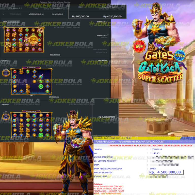 Jackpot Gates Of GatotKaca Super Scatter Jokerbola Rp.4,500,000.00 BUKTI TRANSFER JOKERBOLA Selamat kepada Sahabat JOKERBOLA dengan user id Grexxx88telah berhasil meraih JACKPOT pada permainan Gates Of GatotKaca1000 dari provaider PRAGMATIC dengan kemenangan sejumlah Rp.4,500,000.00.-. Dan telah menyelesaikan penarikan yang di proseskan dari pihak JOKERBOLA di kurun waktu kurang dari 5…