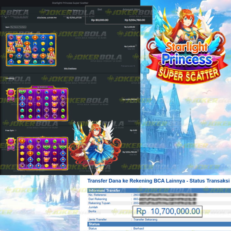 Jackpot Slot Starlight princess Super Scatter Rp. 9,934,760 BUKTI TRANSFER JOKERBOLA Selamat kepada Sahabat JOKERBOLA dengan user id Fexxxx telah berhasil meraih JACKPOT pada permainan Slot Starlight princess Super Scatter dari provaider Pragmatic play dengan kemenangan sejumlah Rp.9,934,760.-. Dan telah menyelesaikan penarikan yang di proseskan dari pihak JOKERBOLA di kurun…