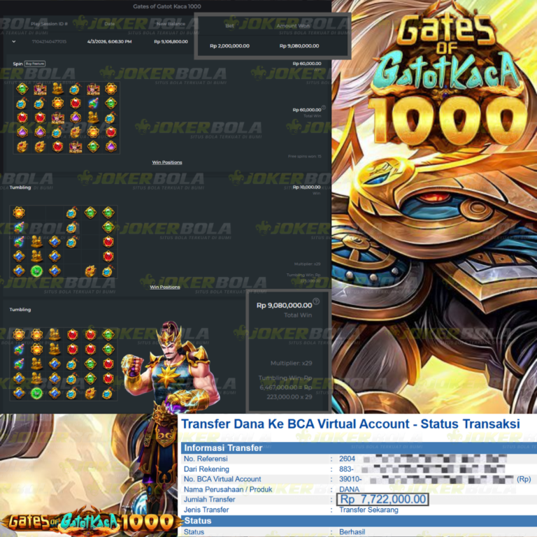 Jackpot Gates Of GatotKaca Super Scatter Jokerbola Rp.4,500,000.00 BUKTI TRANSFER JOKERBOLA Selamat kepada Sahabat JOKERBOLA dengan user id Grexxx88telah berhasil meraih JACKPOT pada permainan Gates Of GatotKaca1000 dari provaider PRAGMATIC dengan kemenangan sejumlah Rp.4,500,000.00.-. Dan telah menyelesaikan penarikan yang di proseskan dari pihak JOKERBOLA di kurun waktu kurang dari 5…