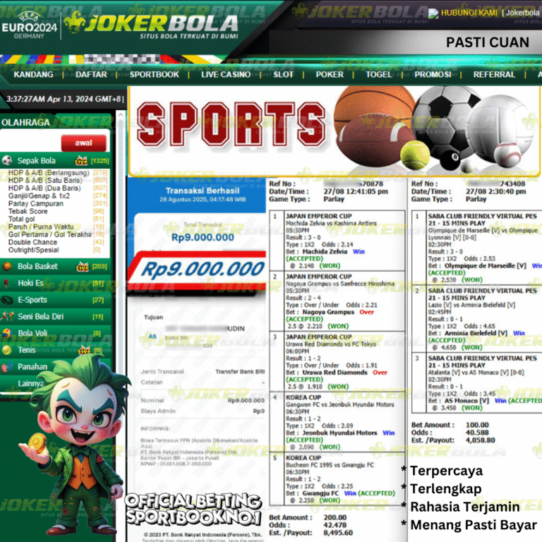 Jackpot Parlay Sportbook Rp. 9,000.000 BUKTI TRANSFER JOKERBOLA Selamat kepada…