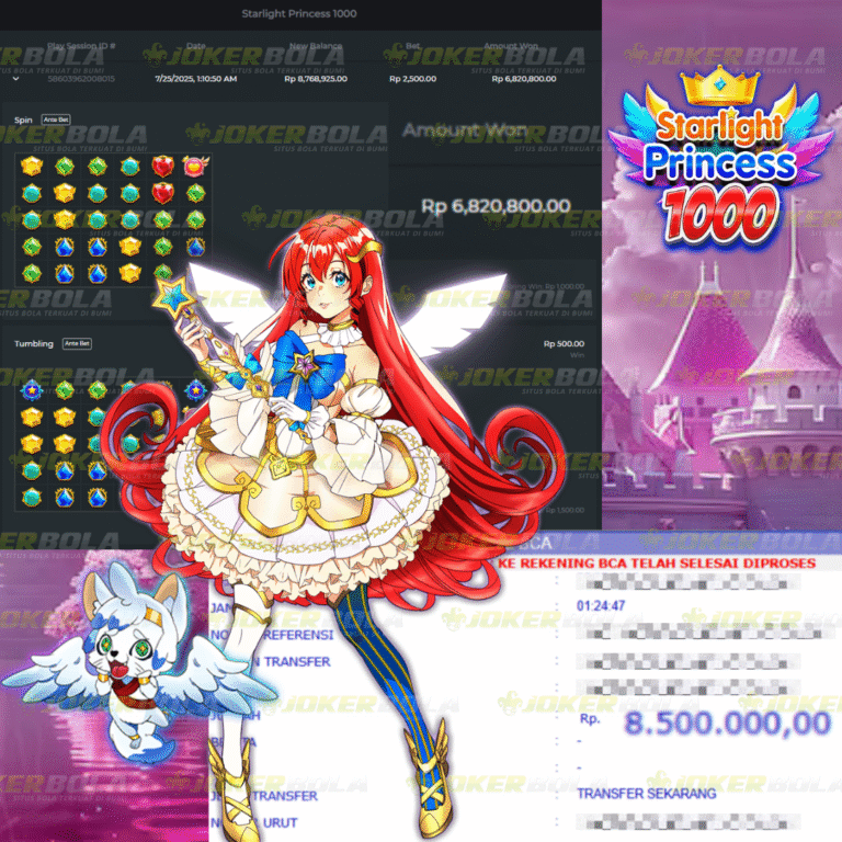 Jackpot Starlight Princess1000 Jokerbola Rp. 6,828,800 BUKTI TRANSFER JOKERBOLA Selamat…