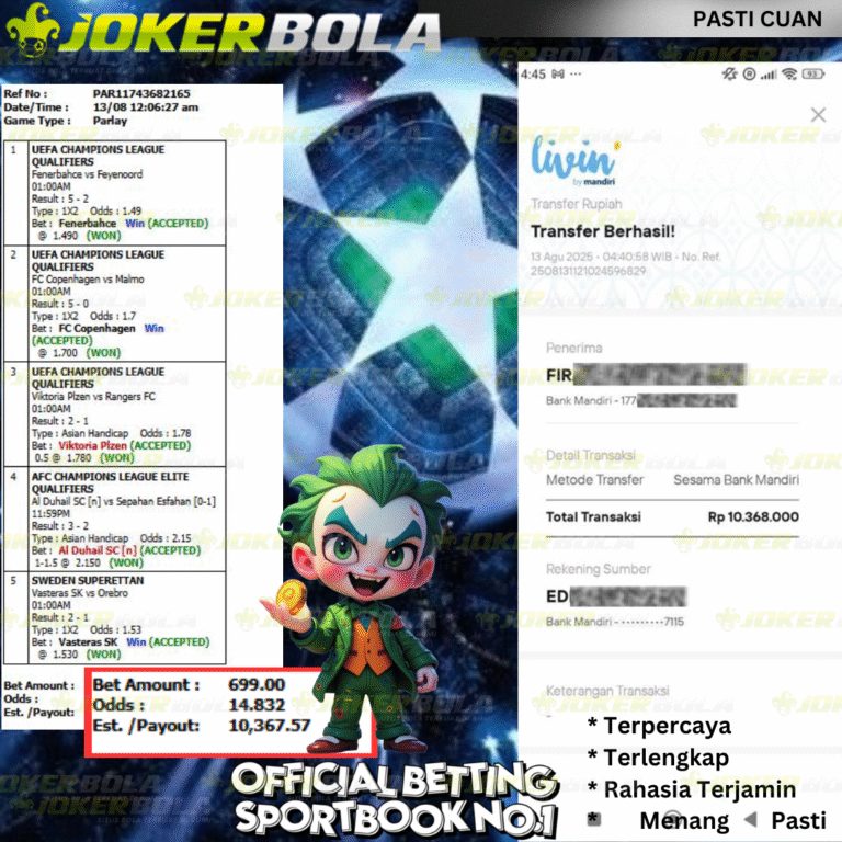 Jackpot Parlay Sportbook Rp. 10,367.57 BUKTI TRANSFER JOKERBOLA Selamat kepada…