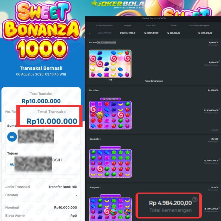 Jackpot Sweet Bonanza 1000 Jokerbola Rp. 4,984.200 BUKTI TRANSFER…