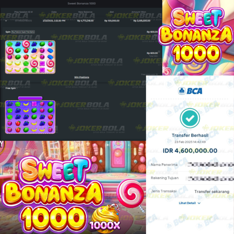 Jackpot Sweet Bonanza1000 Jokerbola Rp. 3,495,500 BUKTI TRANSFER JOKERBOLA Selamat…