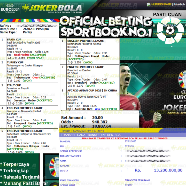 MIX PARLAY JOKERBOLA Rp. 13,226.50 BUKTI TRANSFER JOKERBOLA Selamat kepada…