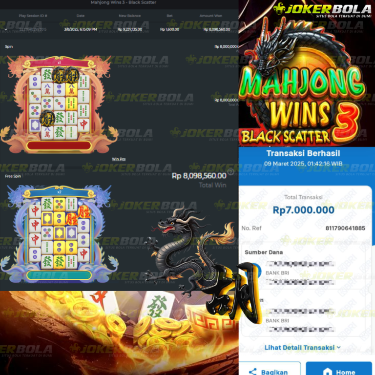 Jackpot MAHJONG WINS 3 Jokerbola Rp. 8,098.560 BUKTI TRANSFER JOKERBOLA…