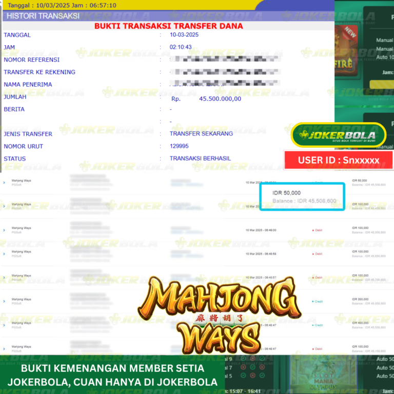 Jackpot Mahjong Ways Jokerbola Rp. 45,000.00 BUKTI TRANSFER JOKERBOLA Selamat…