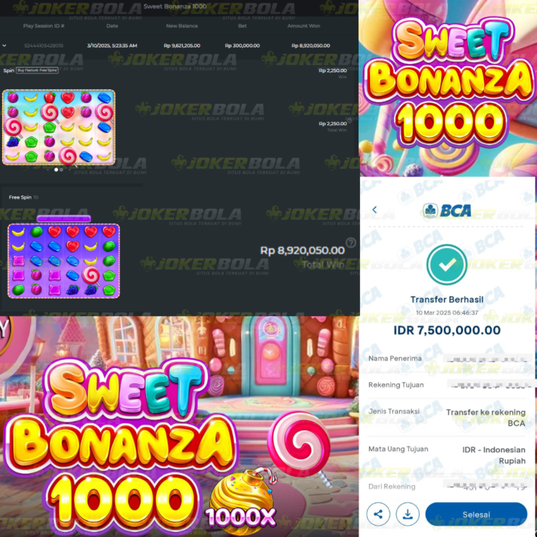 Jackpot Sweet Bonanza1000 Jokerbola Rp. 8,920.050 BUKTI TRANSFER JOKERBOLA Selamat…