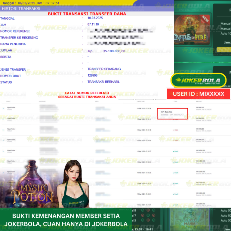Jackpot Mystic Potion Jokerbola Rp. 35,000.00 BUKTI TRANSFER JOKERBOLA…