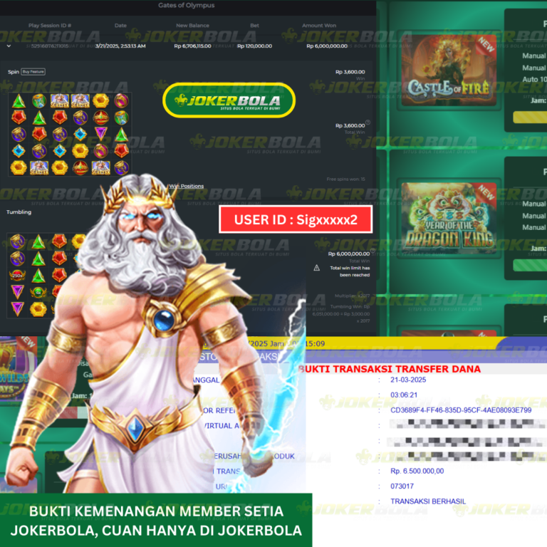 Jackpot Gates of Olympus Jokerbola Rp. 6,000.00 BUKTI TRANSFER JOKERBOLA…