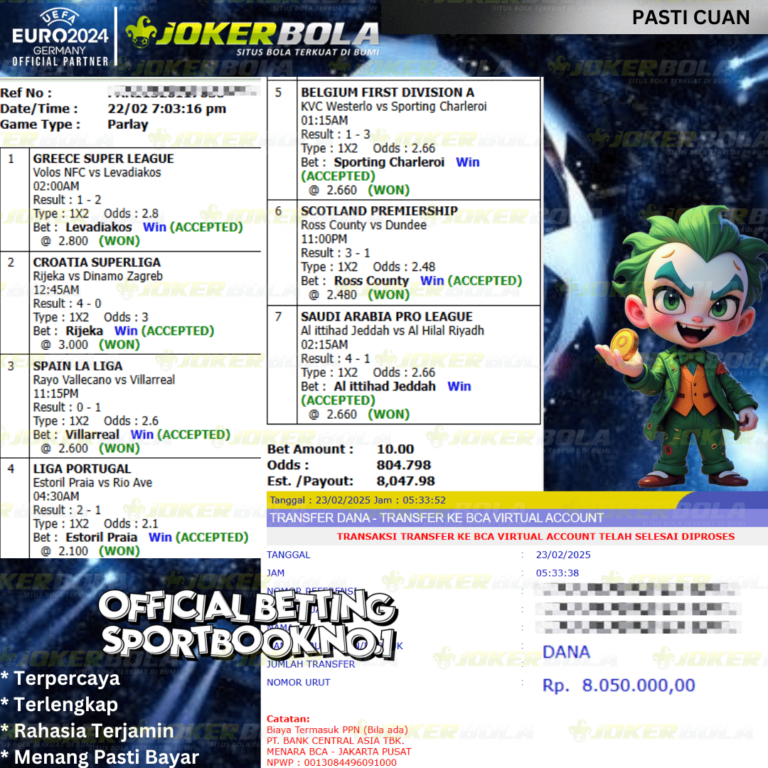 MIX PARLAY JOKERBOLA Rp. 9.000.000 BUKTI TRANSFER JOKERBOLA Selamat…