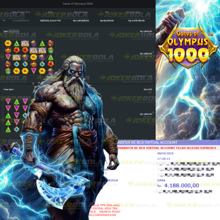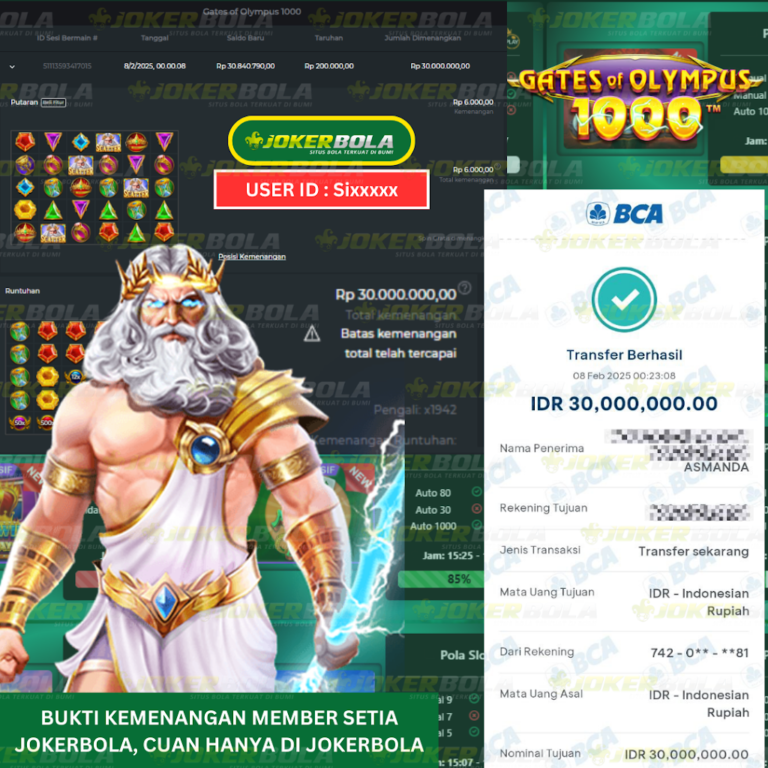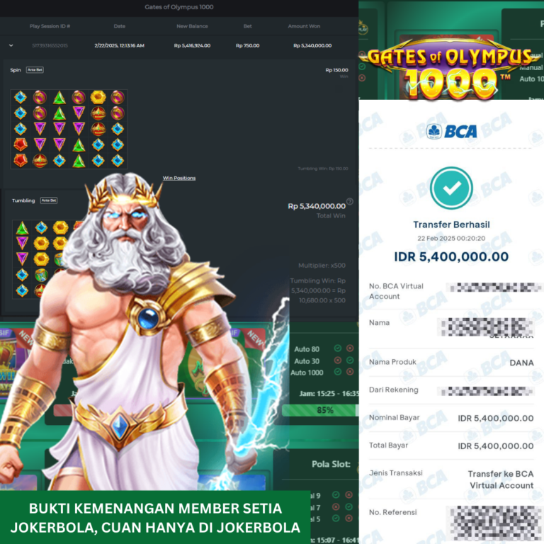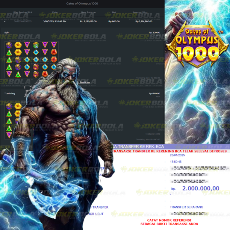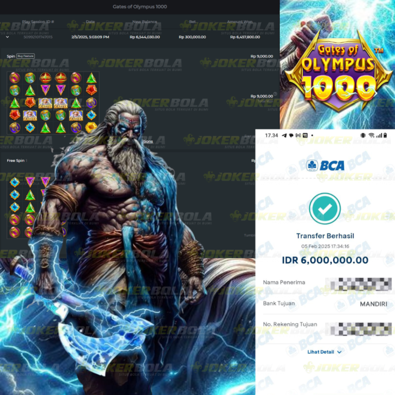 Jackpot Gates of Olympus1000 Jokerbola Rp. 5,340.00 BUKTI TRANSFER JOKERBOLA…