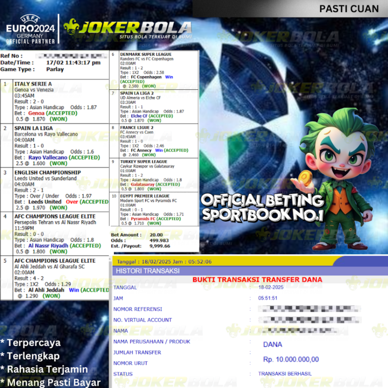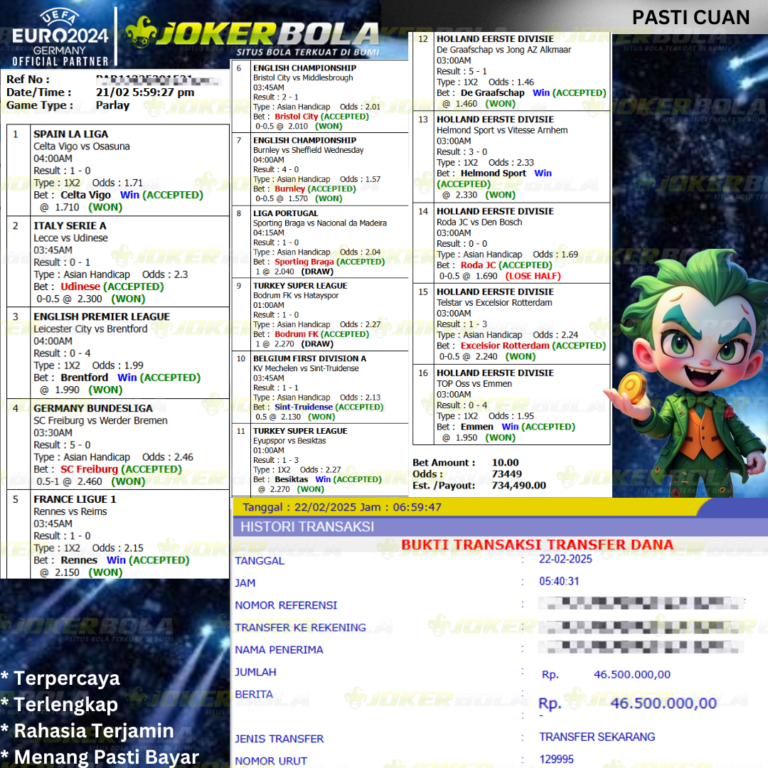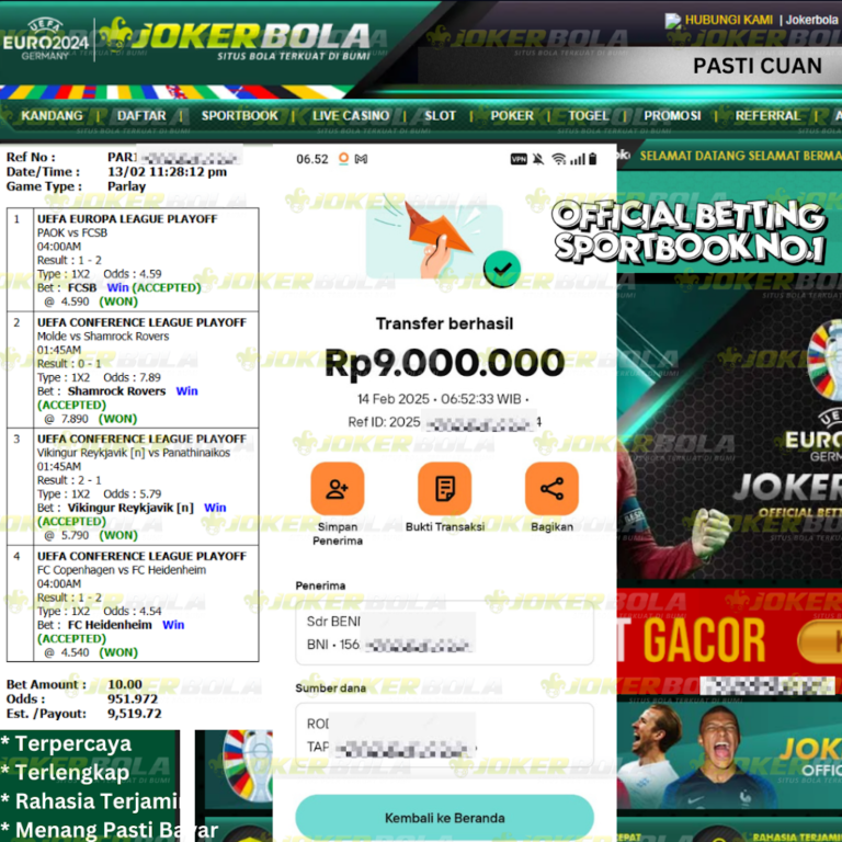 MIX PARLAY JOKERBOLA Rp. 9.000.000 BUKTI TRANSFER JOKERBOLA Selamat…