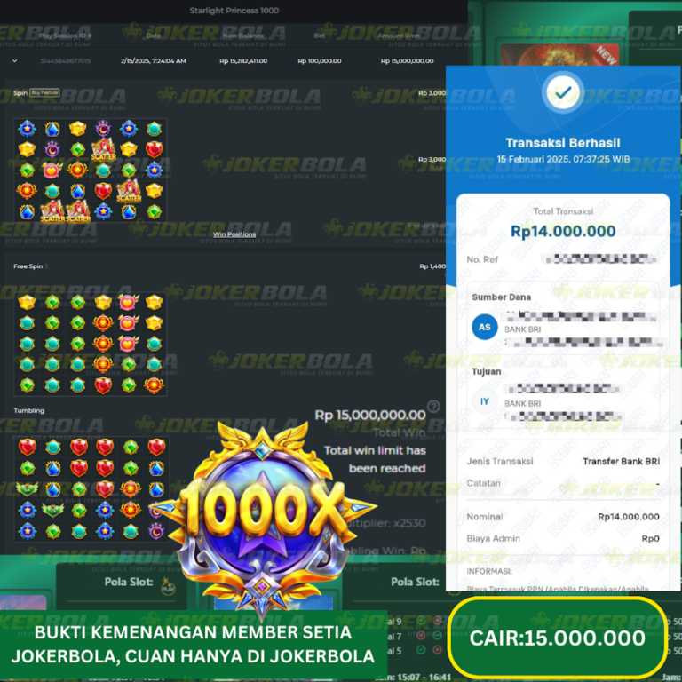 Jackpot Starlight Princess 1000 Jokerbola Rp. 15,000.00 BUKTI TRANSFER JOKERBOLA…