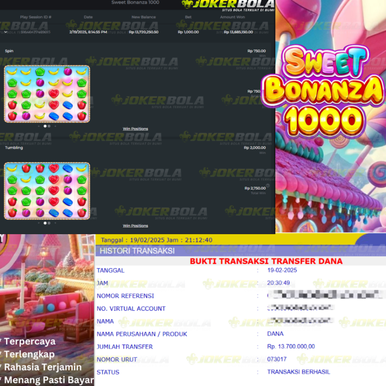 Jackpot Sweet Bonanza 1000 Jokerbola Rp. 13,685.150 BUKTI TRANSFER…